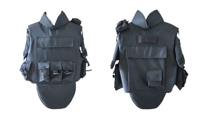 此款為全防速脫防彈衣,遵循NIJ0101.06 等級II-IIIA,凹陷小于44mm, 采用高模量聚乙烯或者凱夫拉,防護等級可通過在(前/后)增加防護插板升級。